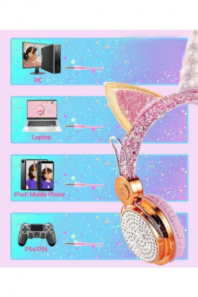 BOWER Parlak Taşlı Unicorn Çocuk Kulaklık (GOLD)
